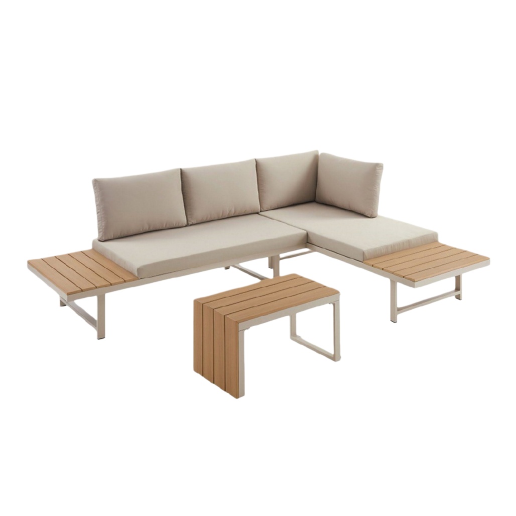 Canapé d'angle modulable pour extérieur en aluminium et tissu - 200 x 100 x 75